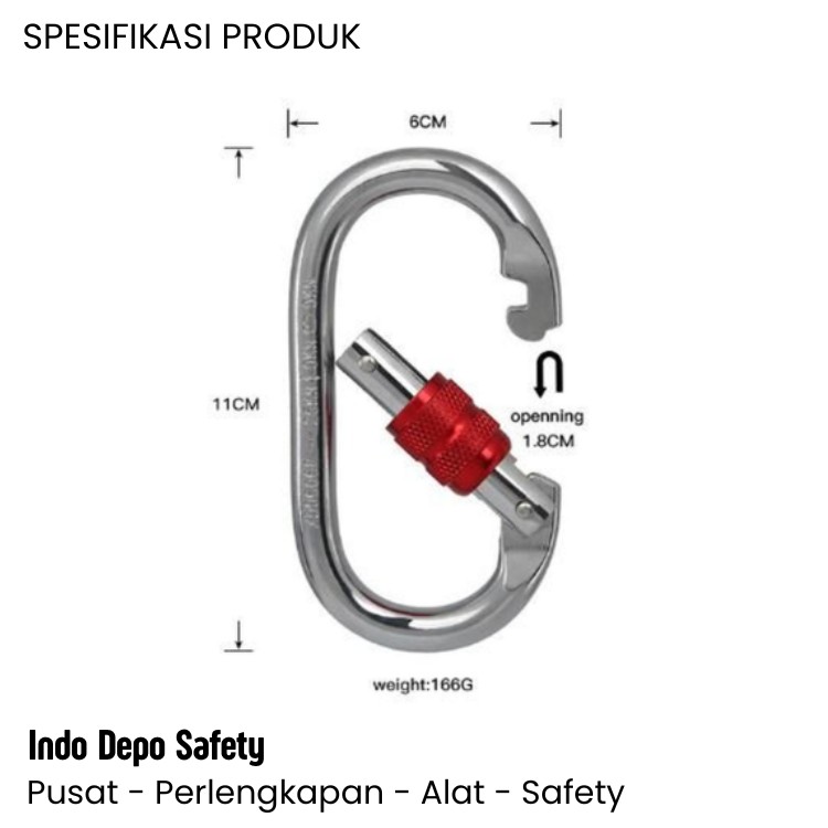 Carabiner Xinda Screw Lock | Indo depo safety menjual perlengkapan safety carabiner untuk keselamatan ketinggian, Hubungi nomor samping ini (0858-4113-0073)